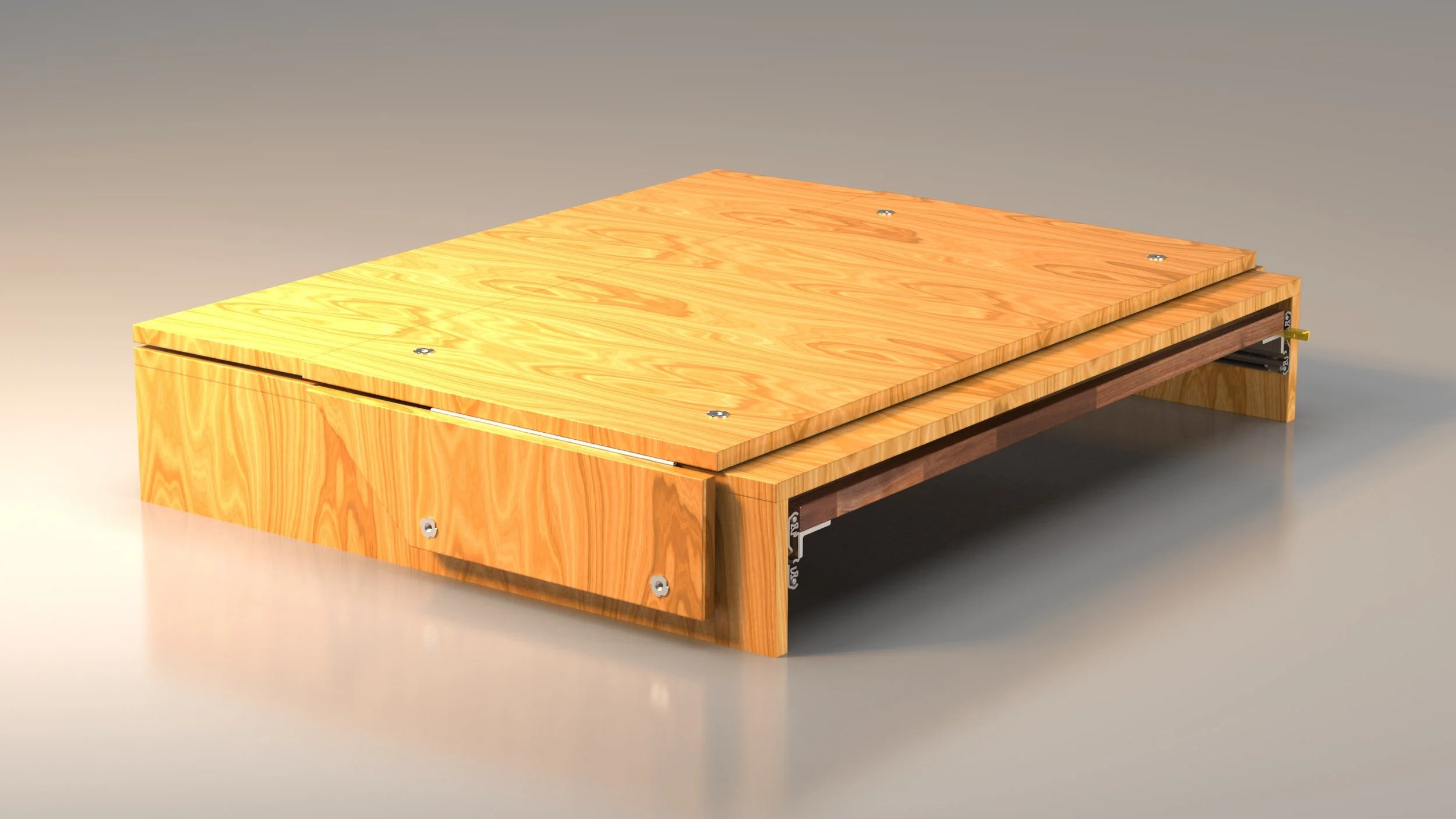 Once I laid out the initial concept design in SolidWorks, it was clear there wasn’t going to be enough room in the trunk to support one combined sleeping platform with drawers, a surface to cook, an area to store the table and grate, and also have the assembly not interfere with the 29° rear seat recline angle. The drawers were scrapped.