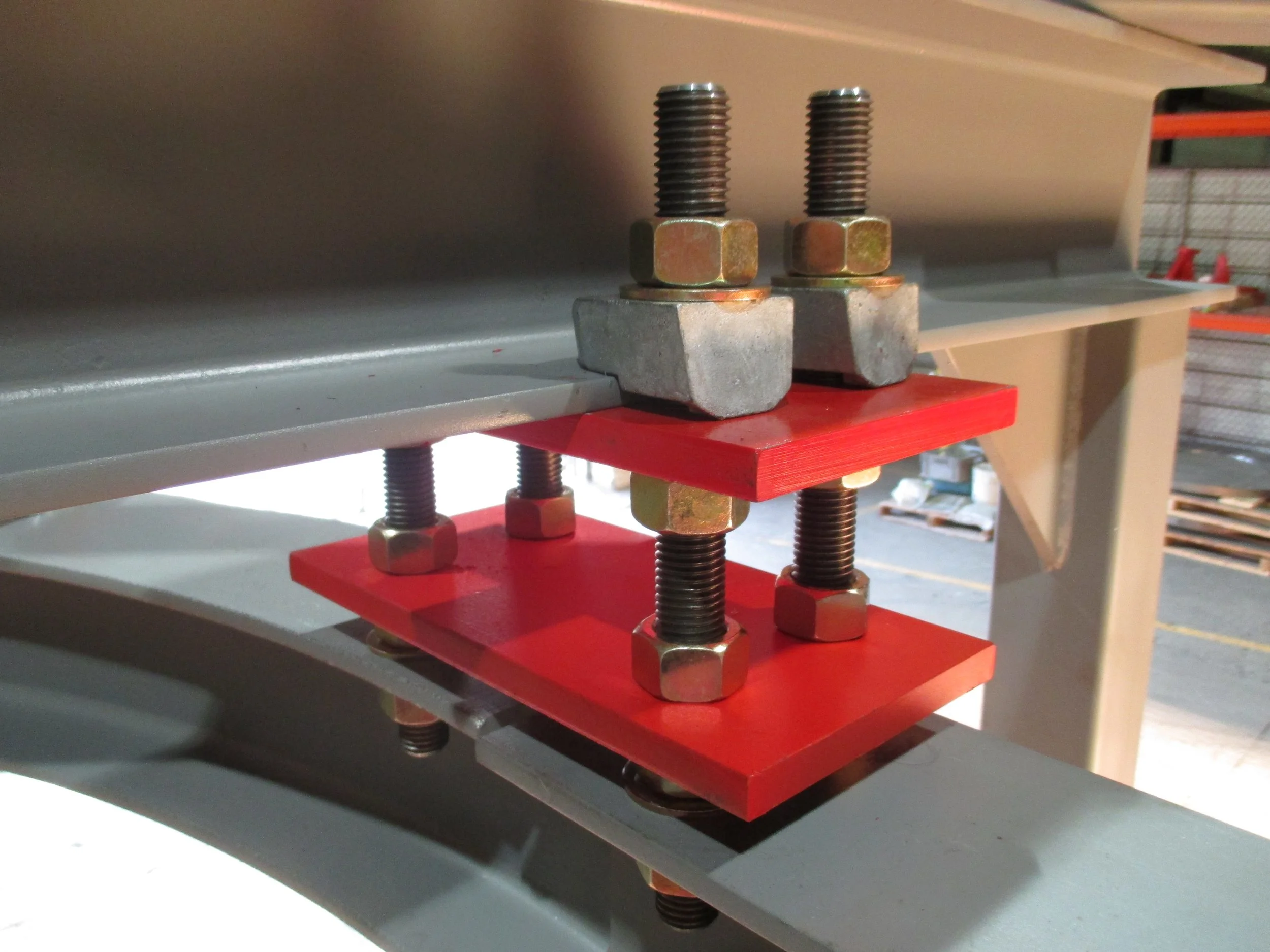 Close-up of the adjustable rail mounts using Grade 8 all-thread and Grade 8 Zinc Yellow Chromate Plated Steel Hex Nuts, which are 25% stronger than medium-strength nuts.